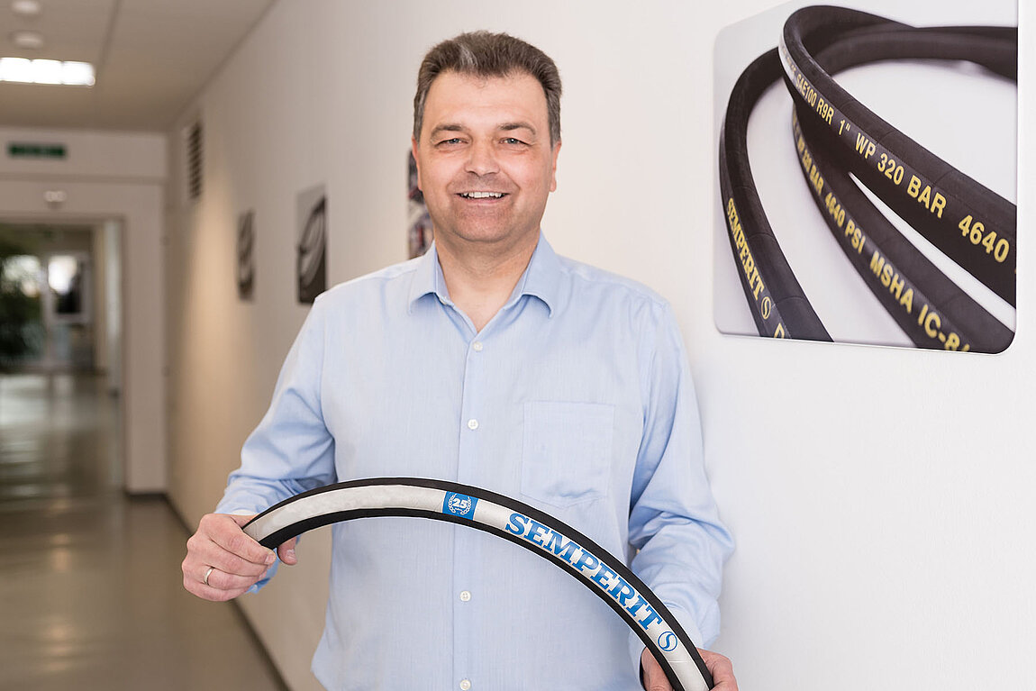Gefertigt werden die industriellen Schläuche von Semperit an den Standorten in Wimpassing, Österreich und Odry, Tschechien. „Wir wollen auch am amerikanischen Markt wachsen“, kündigt Mahlfleisch weitere Initiativen an. Neben neuen Absatzmärkten bietet auch der Megatrend „Grüne Energie“ interessante Chancen für Semperit. Ein laufendes Projekt im Wasserstoffbereich verdeutlicht dies: „Um reinen Wasserstoff zu transportieren, sind entweder extrem hoher Druck oder extrem niedrige Temperaturen erforderlich. Beides ist nicht nur eine logistische Herausforderung, sondern auch äußerst energieintensiv. Wir lernen da gerade jede Woche dazu“, berichtet Mahlfleisch über die Herausforderungen der Zukunft. Und so bleibt es für ihn auch nach Jahrzehnten bei Semperit immer noch spannend und abwechslungsreich.